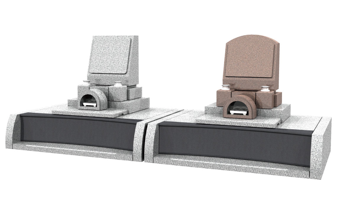 シンプルで公園墓地の雰囲気にぴったりなデザイン。お隣のお墓との距離を設けた、ゆったり感が特長です。